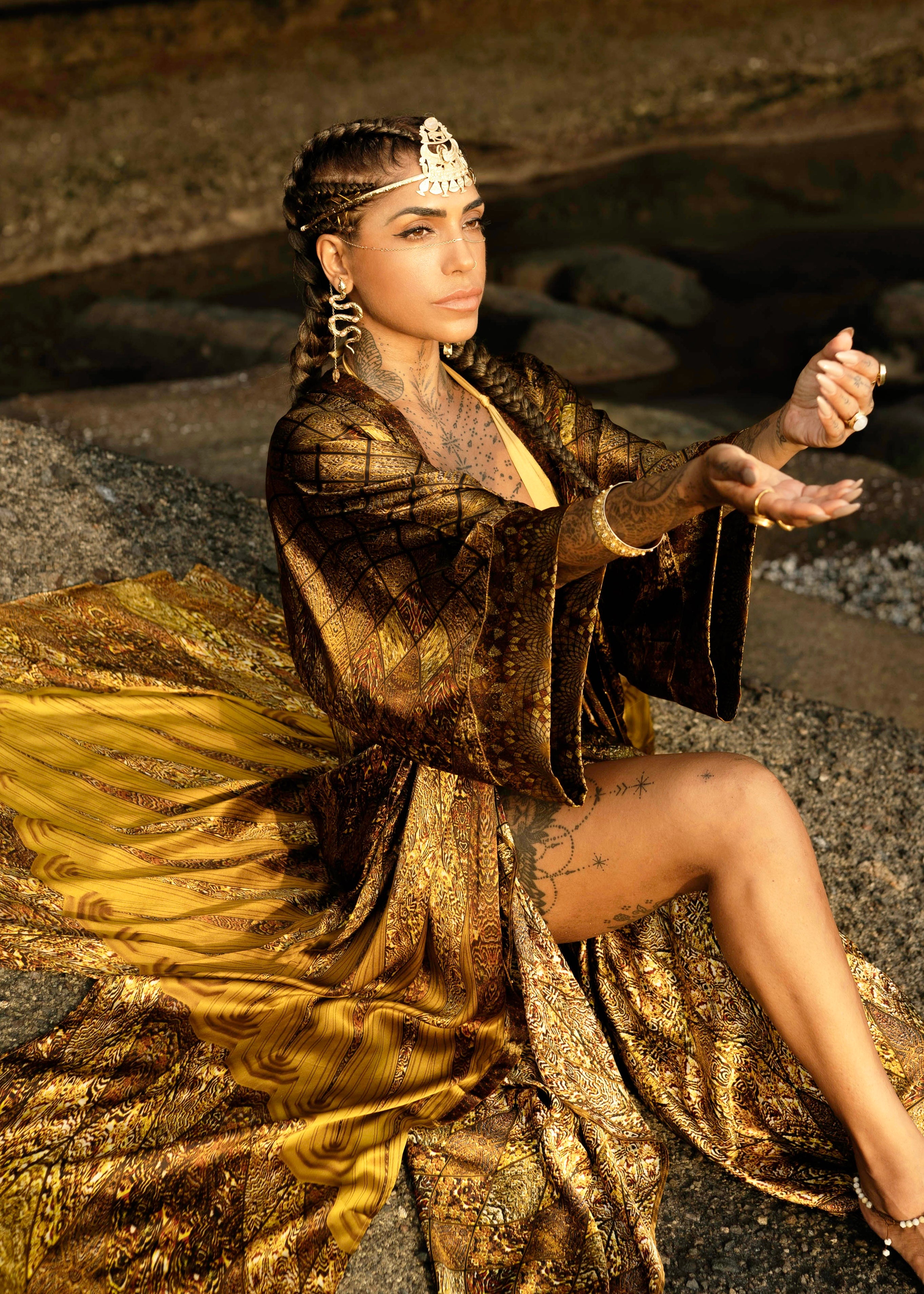 Cut from luminous silk and crafted with care and devotion, this kimono is a carrier of high-frequency intention. The golden mandala resting between the shoulder blades is an anchor point. A quiet, steady pulse of abundance that sits against your heart and reminds your system who you are when you stop negotiating with your power.
